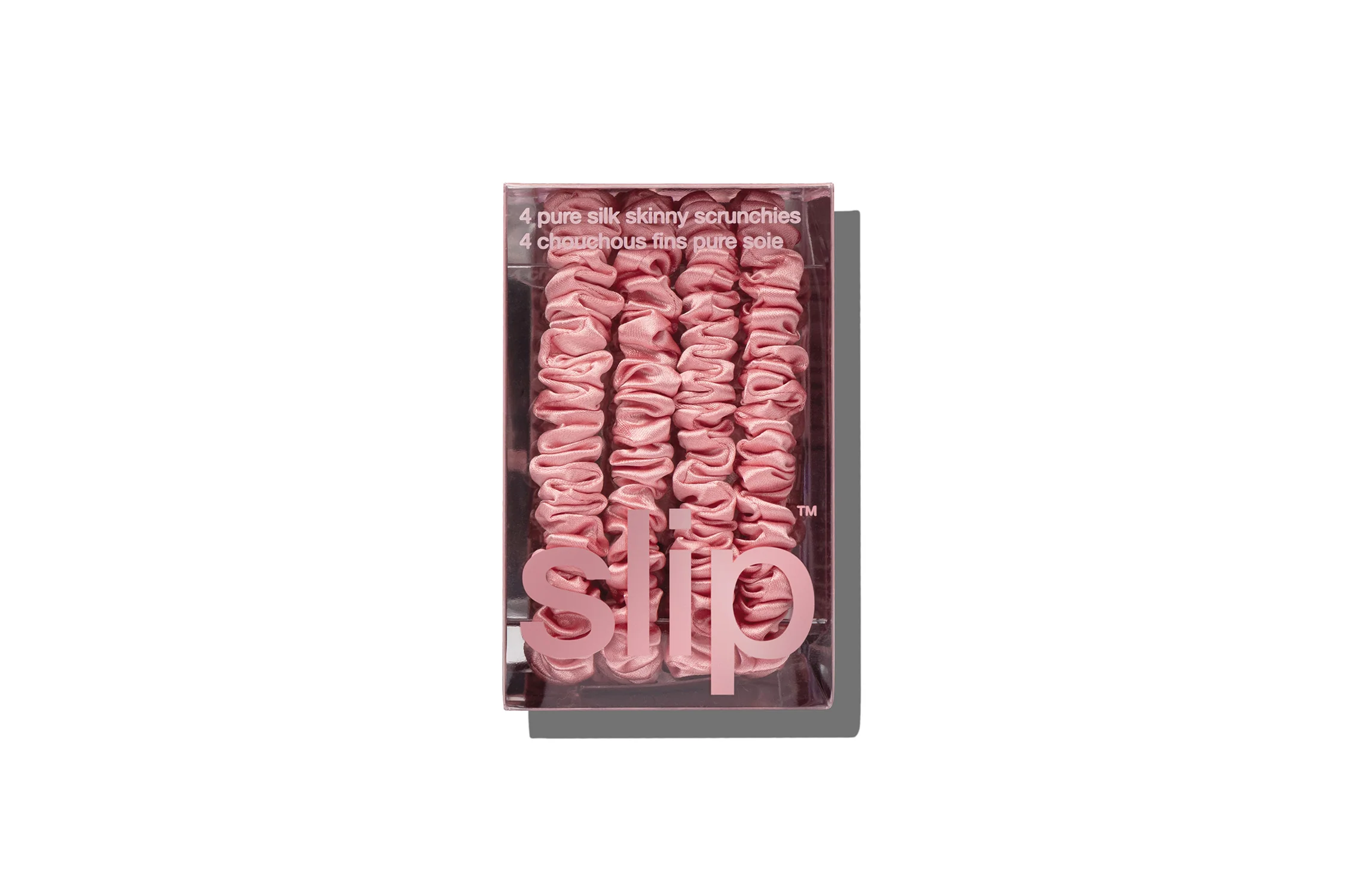 This set includes: 4 x rose pure silk skinny scrunchies.