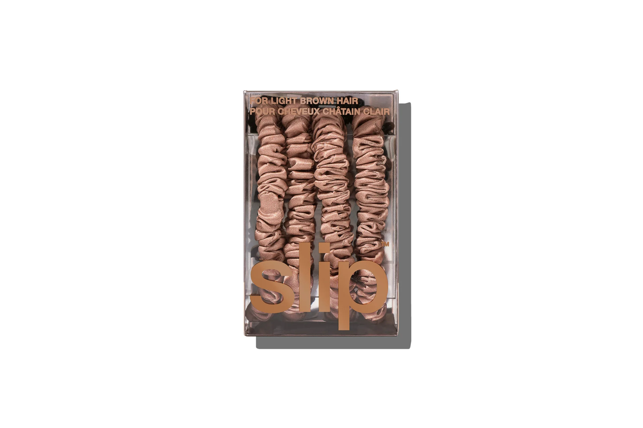 This set includes: 4 x multi award-winning light brown pure silk skinny scrunchies